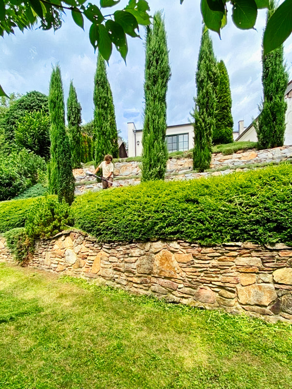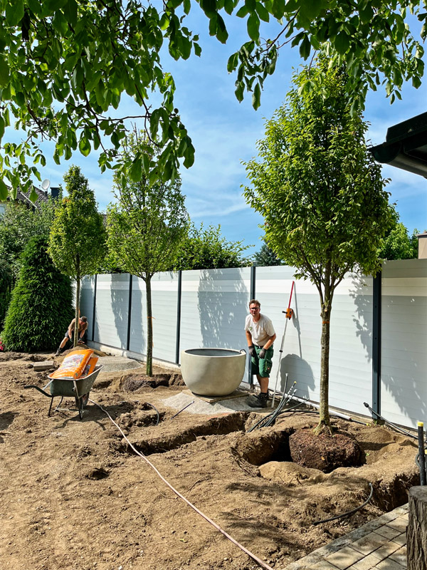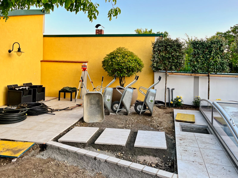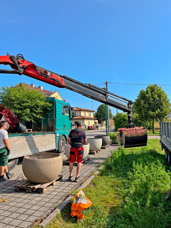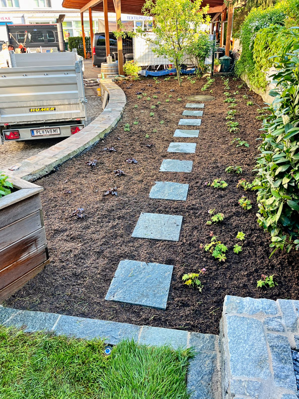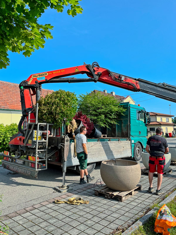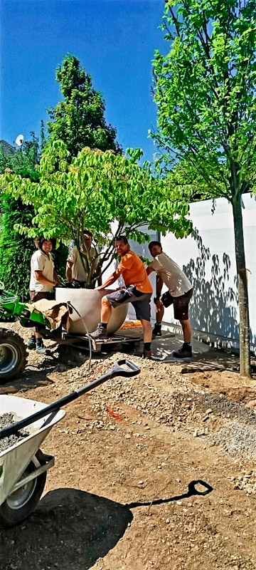 Impressionen Einen Garten zu pflanzen bedeutet an Morgen zu glauben. Audrey Hepburn beim Transport von schweren, großen Bäumen in den Garten ist der Bagger eine große Hilfe Holz vermittelt ein Gefühl von Wärme und Harmonie - optimal zum Relaxen Holzzäune harmonieren auf natürliche Weise mit dem grünen Garten und den Bäumen. neues Pflaster für die Terasse Terasse gepflastert Gestaltung eines Baumkreises Stiege aus Natursteinen Einfassung und Gestaltung beim Terassen-Zugang Springbrunnen mitten im Garten blühende Blumen und Sträucher das ganze Jahr über oftmals wird die Wirkung unterschiedlicher Gräser im Garten unterschätzt ein Hauptaugenmerk gilt bei der Pflasterlegung der Integration bestehender Objekte ein Garten zum Wohlfühlen wir pflegen Ihren Garten, Bäume und Sträucher Pflasterarbeiten Natursteinmauern als besonderes Gestaltungselement moderne Gerätschaften erleichtern die professionelle Arbeit gemeinsam werden die Wege und nötigen Gräben laut Plan markiert Raphael wird von seiner Familie - im Bild mit seinem Vater - umfangreich unterstützt ein grüner Garten erfreut die Seele Verlegung einer Bewässerungsanlage ausheben der Gräben zum Verlegen einer Bewässerungsanlage die professionelle Planung wird vom Hausmann-Team mit viel Liebe zum Detail umgesetzt Verlegung der Leitungen für die Gartenbewässerung eine gepflasterte Terasse erfreut Familie und Gäste Gartengestaltung mit NatursteinElementen